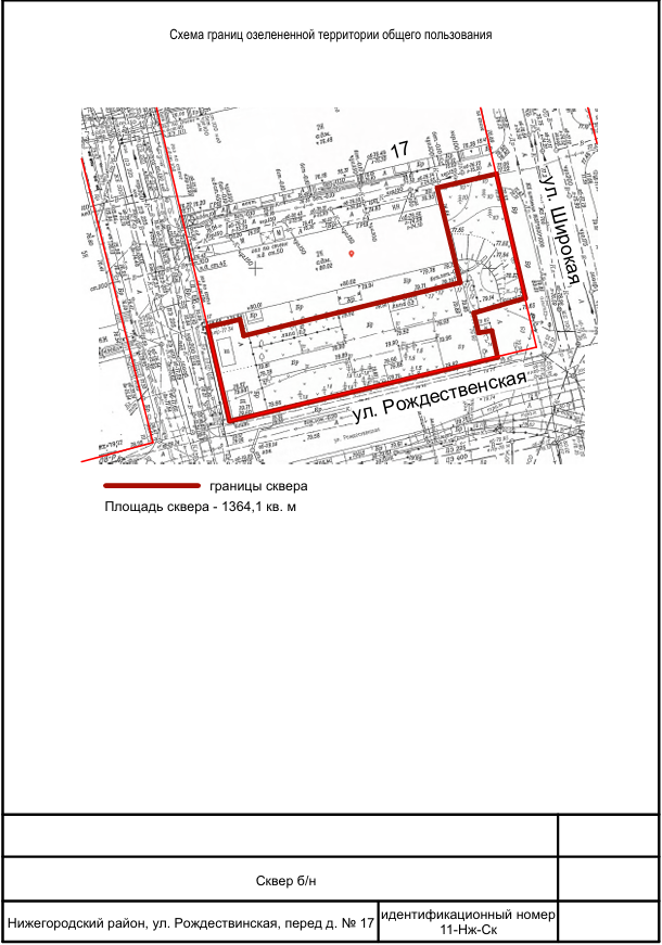 | 11-Нж-Ск | Сквер б/н | Сквер | Ул. Рождественская, перед д. № 17 | 0,13641 | 0,09549 | Муниципальная собственность |
