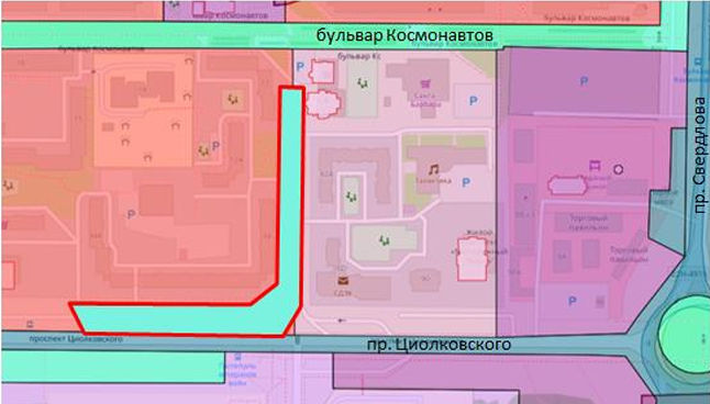 Бульвар | Вдоль домов по б-ру Космонавтов д. 22 и проспекту Циолковского д. 100 |